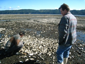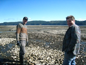 The camera caught up with Adam and Louie wandering through the single oyster pens one blindingly-sunny day in late March. It was the first daylight low tide of the season.