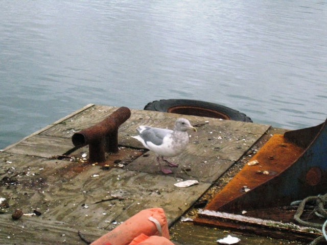 Here are some photos from our barge ride last week with Urban Farmer. The weather was perfect for a short little jaunt out on the Canal... we took some time to liberate a bucket of sea creatures that had been stranded on the shucking table, met Lefty, the injured seagull who always hitches a ride on the barge to eat similarly stranded sea creatures, and watched as Adam pulled in a few tubs. And then, later in the week, we saw a really pretty moonrise. N.B. safety mongers: while we did provide life jackets to everyone on the boat, nobody took us up on the offer, so the jackets remained in a pile on the deck. In other news: devoted blog fans will notice that it's changing shape and color, and occasionally going under whenever an incompatible plug-in is activated. Never fear, it always comes back. And if you're technologically inclined, check out the Mermaid Restaurant's iPhone oyster identification app... called the Oysterpedia. Pretty slick! Below, chef Ryan at the Battleaxe wheelhouse.