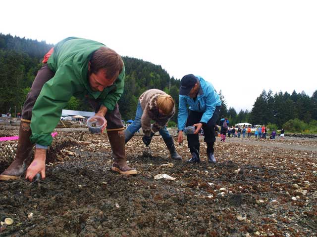 Visitors came from far and wide to tour the beach with Teri King from Washington Sea Grant, pose for a photograph with two cooperative Geoduck, relax in the beer garden, and eat some really fresh seafood.