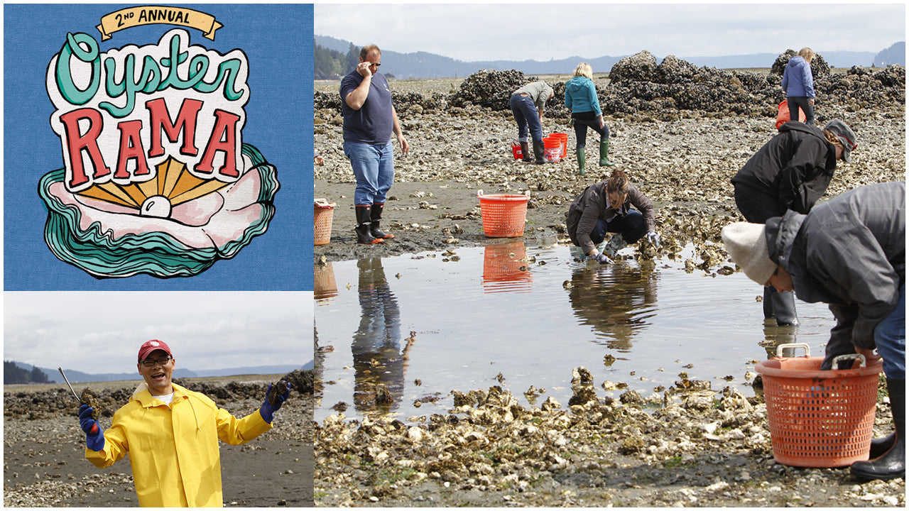 The 2017 saw a continuation of all those good vibes. The Silent Auction got better and better, with donations from XtraTuf and Patagonia and dinner tickets to Secret Supper and Outstanding in the Field farm dinners. Chef Luke Reyes flew up from LA to serve ramen and teach a cooking class. Shelton-based Urraco Coffee showed up with the first ever "Blue Pool Blend" ground coffee infused with oyster shells (it's very smooth!). We setup a guest oyster booth to feature other oyster farmers, which offered our fellow farmers a good excuse to skip the low tide and come hang out with us.