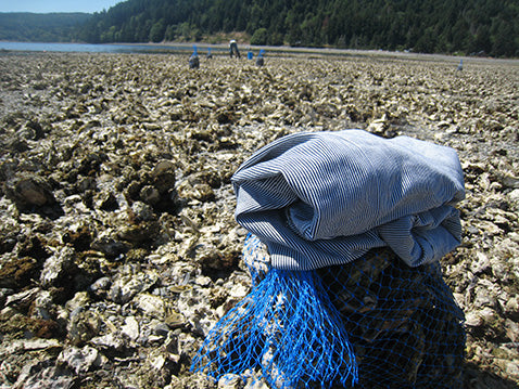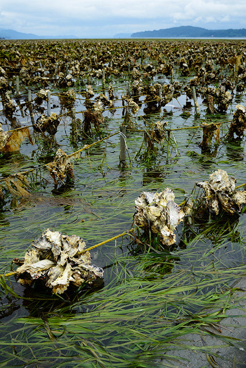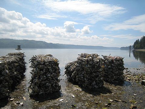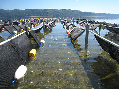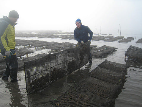 Rack-and-Bag: A culture method in which oysters are grown in bags that are elevated up off the bottom and can be rolled over from side to side manually, like dominoes. Also known as the French rack-and-bag system. This method is used by Hog Island Company in California to grow their Sweetwaters.