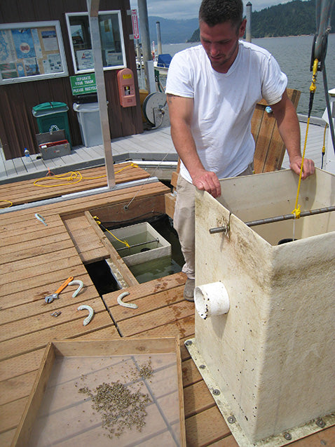 Nick pulling a silo of oyster seed out of the FLUPSY.