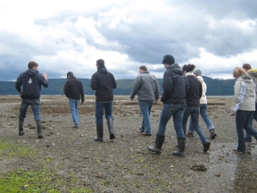 Adam gave them a walking tour of the beach, going over everything from oyster seasonality and reproduction to the challenges of predicting the effect of atmospheric pressure on tidal changes. They gobbled it up, and they also ate an impressive quantity of shellfish. All in the name of research, of course.