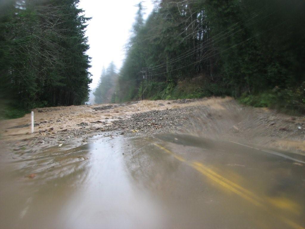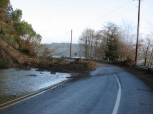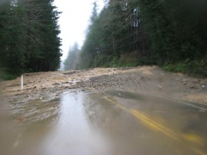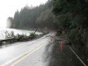 One night in early December, 2007, 8 inches of snow fell on the Hood Canal area, with bigger accumulations up in the high country. Then, overnight, the temperature jumped up 20 degrees and it rained 11 inches. The next morning Highway 101 was a complete disaster. There were 15 mudslides, like the ones pictured below, between Hama Hama and Hoodsport, and the road was closed for two weeks.