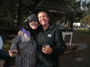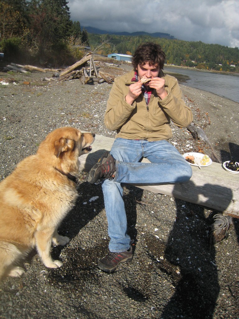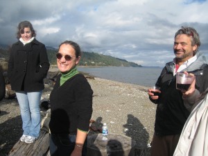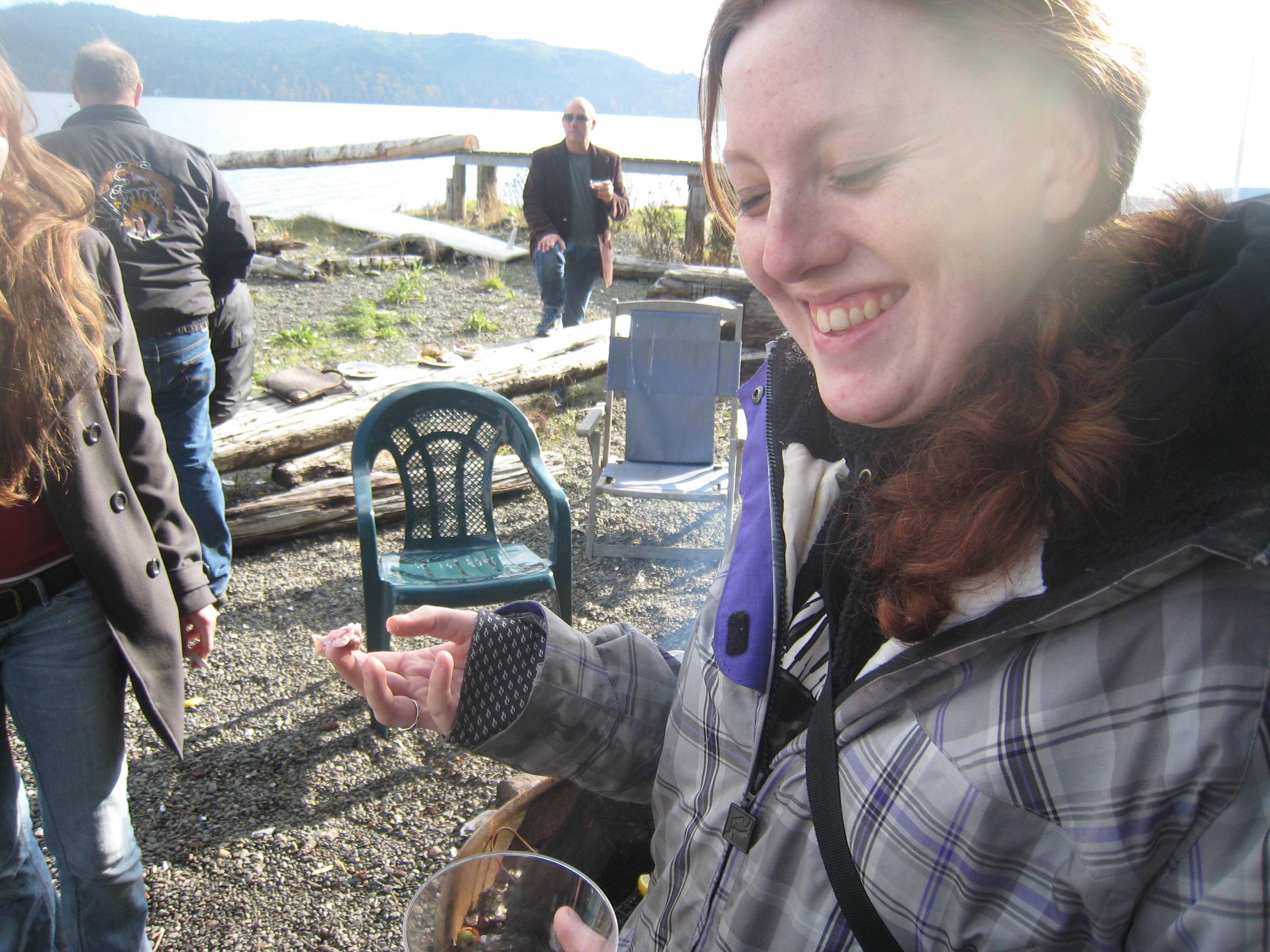 It was a beautiful day for foraging. While tromping around looking at spawning salmon, the culinary students found some chanterelle mushrooms. Keff and her crew sauteed the mushrooms and then stuck them on the barbecue. They were meaty, smokey, and really delicious. Then, after lunch, some students were walking down the beach and, very surprisingly, kicked a dead chum salmon up on shore. They brought their catch back for inspection, and our three salmon experts said that the fish was fresh and cold enough to eat. And so we did.