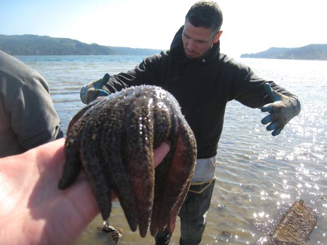 A sunflower star, which get much bigger than the one pictured here, as Nick (in the background) demonstrates.