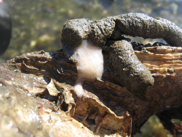 And finally, there's this, which is altogether way too silly. It's an arm, an egg sack of some sort, and a dead oyster, all accidentally situated to resemble a home-made beach-themed muppet puppet: