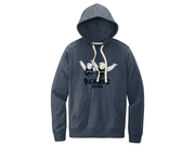 This is a midweight pullover hoodie in heathered navy, built for layering over your thermals.
