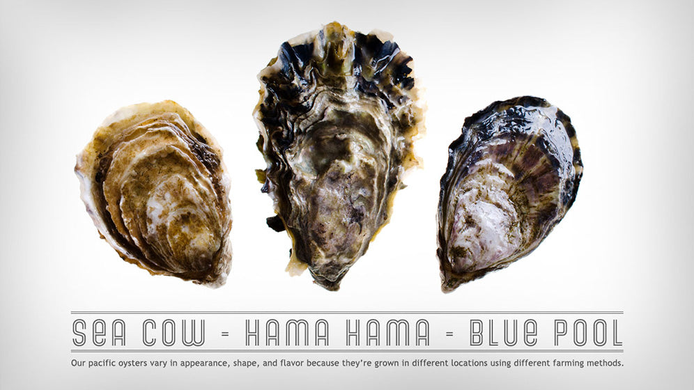 - Pacific Oysters (typically 3 - 5 varieties)