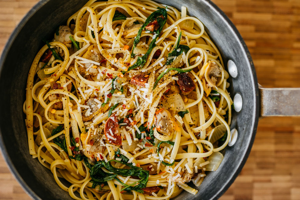 Clams and sausage go together like peas and carrots. We like to use Olympia Provisions chorizo from Portland Oregon, but any hard, spicy sausage will do.