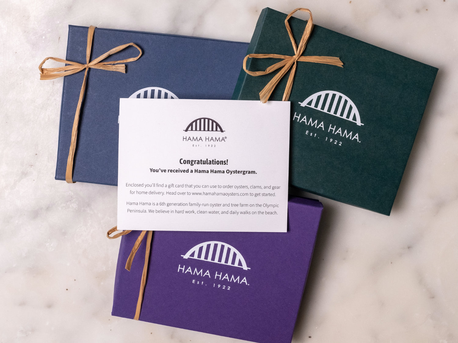 When you order an Oystergram, we'll ship a thoughtful (shelf stable!) gift box to your oyster-loving recipient. Included in the box is a gift card to our online store for $50, $100, or $150. This way, they can arrange the oyster delivery at their convenience.