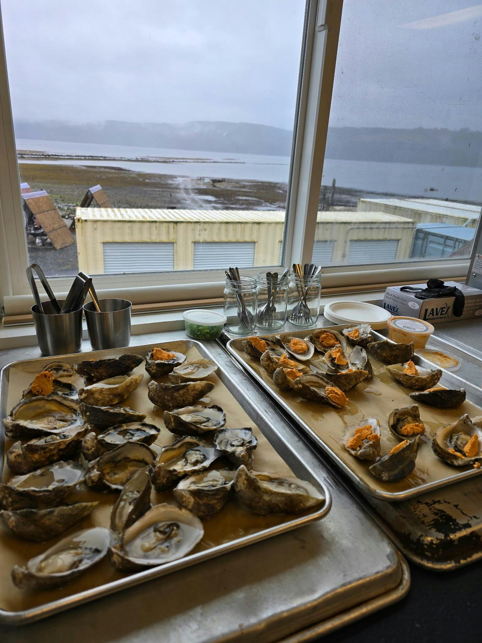 Class also includes snacks, handouts to take home, wine and beer pairings, and a brief walking tour of our oyster farm.