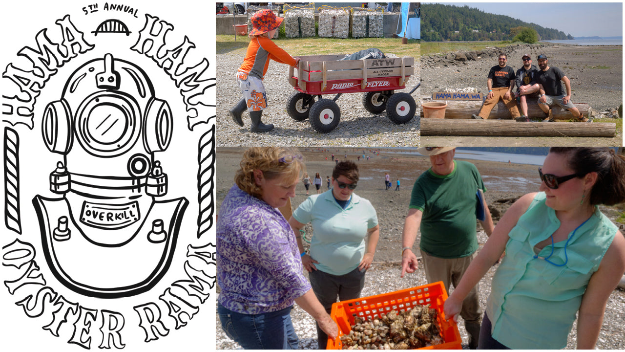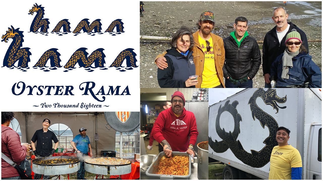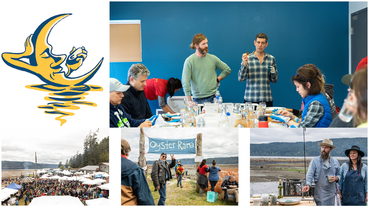 The 2017 saw a continuation of all those good vibes. The Silent Auction got better and better, with donations from XtraTuf and Patagonia and dinner tickets to Secret Supper and Outstanding in the Field farm dinners. Chef Luke Reyes flew up from LA to serve ramen and teach a cooking class. Shelton-based Urraco Coffee showed up with the first ever "Blue Pool Blend" ground coffee infused with oyster shells (it's very smooth!). We setup a guest oyster booth to feature other oyster farmers, which offered our fellow farmers a good excuse to skip the low tide and come hang out with us.