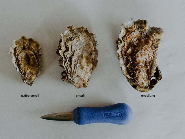 3 dozen oysters grown for the grill (or oven!). Oysters shrink as they cook, so these are a bit larger than our average oyster.