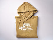 This is a medium weight pullover hoodie with a logo inspired by the Oyster Saloon's waterfront seating. Choose between Saddle (with khaki logo) and Sandstone (with white logo).
